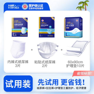 永福康成人纸尿裤老人用尿不湿一次性护理垫男女试用装组合15片