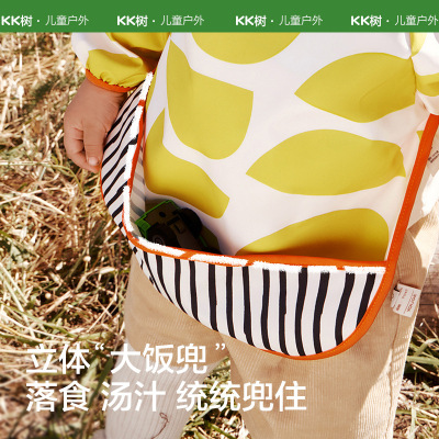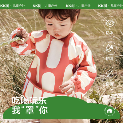 KK树宝宝吃饭围兜婴儿辅食罩衣防水饭兜幼儿园反穿衣一体式防脏污