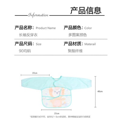 儿童防水防脏反穿衣宝宝罩衣幼儿园长袖围裙婴儿护衣男童围兜饭兜
