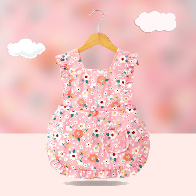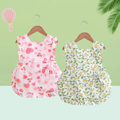 宝宝纯棉防水围兜夏季无袖吃饭围裙女宝宝罩衣洋气公主裙儿童护衣