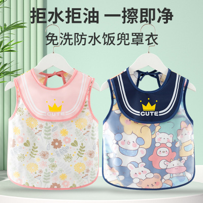 宝宝吃饭围兜防水防脏夏季儿童辅食罩衣防脏男女婴儿无袖饭兜护衣