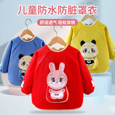 儿童罩衣宝宝防水长袖吃饭衣围兜婴儿反穿衣画画衣儿童围裙护衣