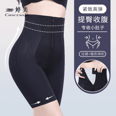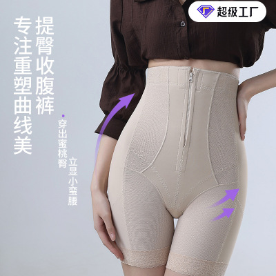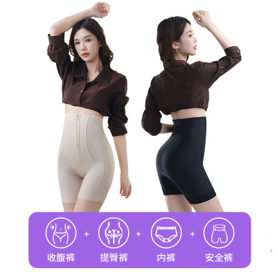 高腰提臀收腹安全裤强力收小肚子产后翘臀拉链塑形束腰塑身美体裤