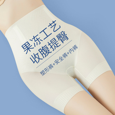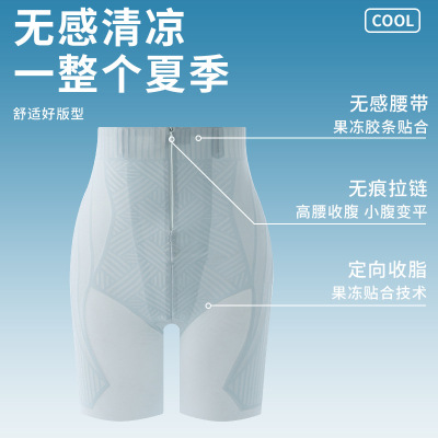 直播爆款超薄排扣拉链果冻高腰收腹裤双层加压高腰无痕平角塑身裤