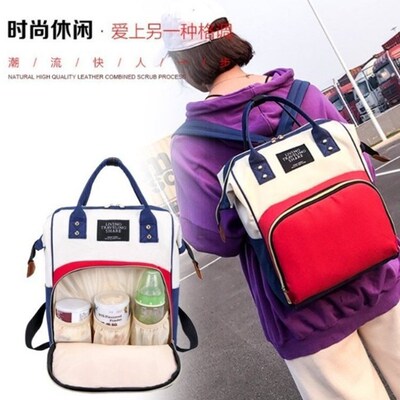 时尚简约手提妈咪包新款韩版撞色斜挎包多功能外出双肩母婴包