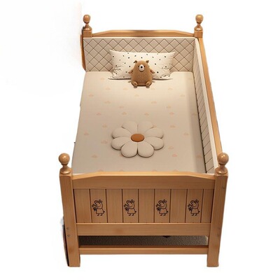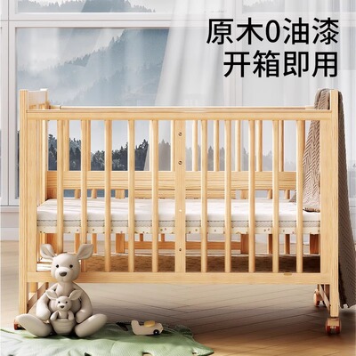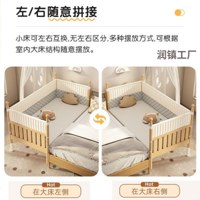 全实木儿童床儿童拼接小床宝宝升降加宽床边大床婴儿床榉木护栏