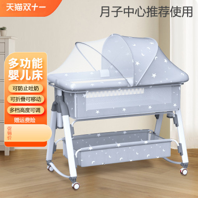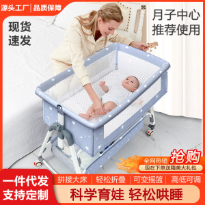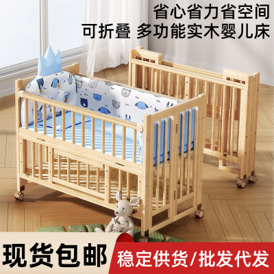 可折叠实木婴儿床多功能宝宝床新生婴儿移动摇篮拼接婴儿大床现货
