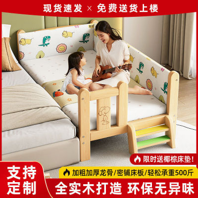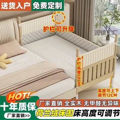 实木儿童拼接床可升降高度调节加宽床卧室大床带护栏婴儿床铺