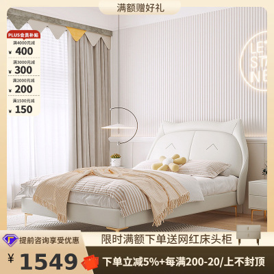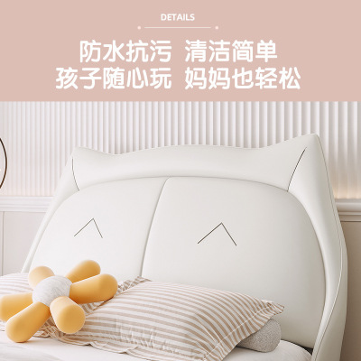 桐语特女孩公主床单人床1.2米1.5米男孩北欧轻奢猫咪皮艺床儿童床