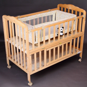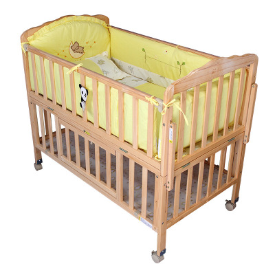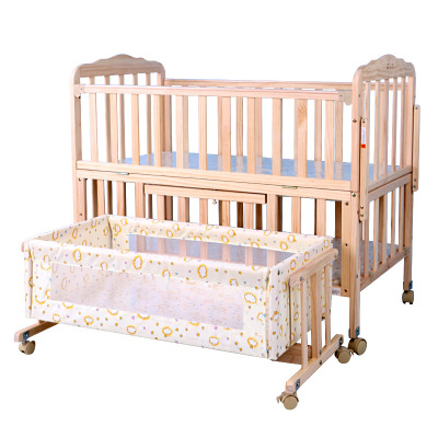 【】实木婴儿床可拼接大床可移动新生多功能宝宝床无漆摇篮床