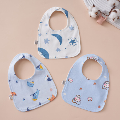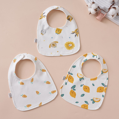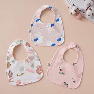 婴幼儿纯棉口水巾 宝宝360单双排扣围嘴围兜四层防水旋转花朵八角