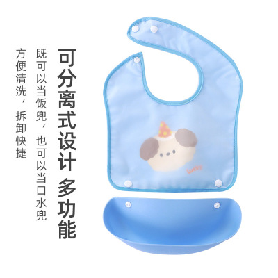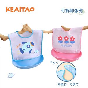 宝宝防水饭兜新生儿辅食口水兜可拆卸两用围兜幼儿园口水巾按扣款