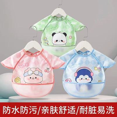 宝宝吃饭围兜防水防脏免洗儿童罩衣婴儿饭兜小孩护衣无袖夏季围裙