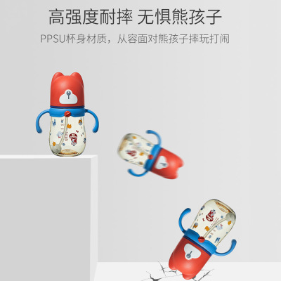 科巢翻盖奶瓶宽口PPSU婴儿宝宝吸管水杯牛奶6个月一2岁防呛防胀气