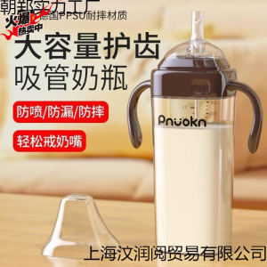 吸管大宝宝奶瓶一岁6个月2岁3防喷1岁以上奶瓶儿童喝奶大容量带柄