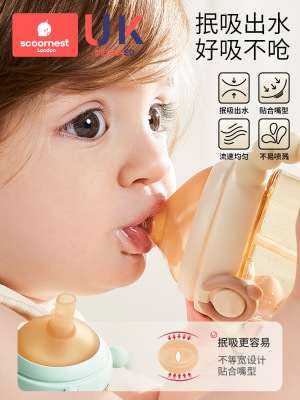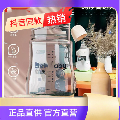 婴儿-个月宝宝玻璃奶瓶防胀气防呛硅胶母乳带勺子喝水果汁