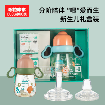 哆拉哆布婴儿奶瓶鸭嘴学饮杯一瓶三用礼盒装奶瓶水杯喂养套装6478