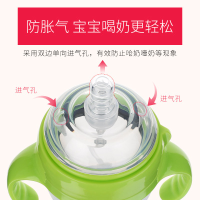 宽口径适用双把手彩绘奶瓶婴儿宝宝耐摔第三代奶嘴