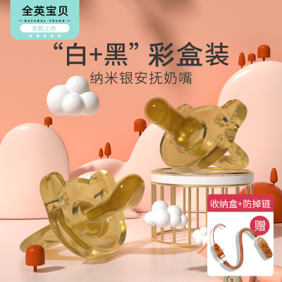全英宝贝纳米银安抚奶嘴安睡型防掉链日用夜用型婴儿宝宝磨咬牙胶