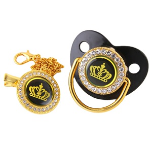 热卖高档金色钻石安抚奶嘴卡通皇冠婴儿奶嘴含链条夹