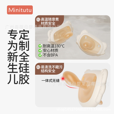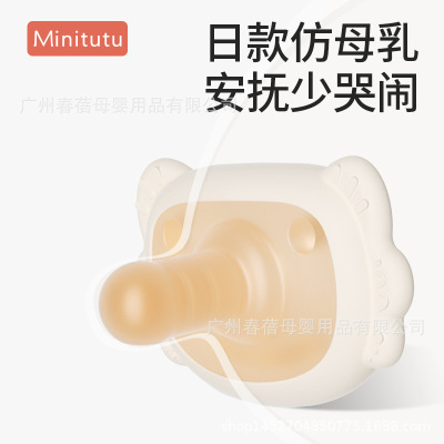 Minitutu全硅胶新生儿安抚奶嘴日夜两用质轻防掉圆头扁头安抚宝宝