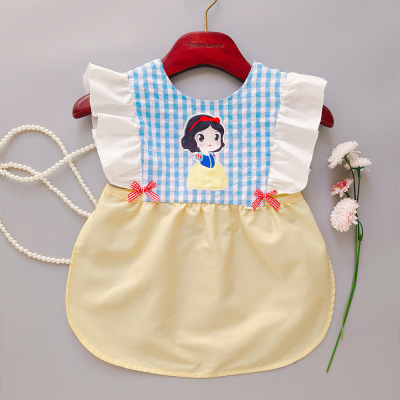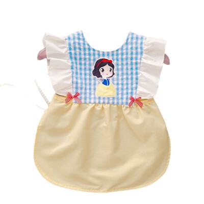 女宝宝围裙春夏格子公主罩衣无袖系带护掛小孩婴儿倒背衣吃饭衣薄