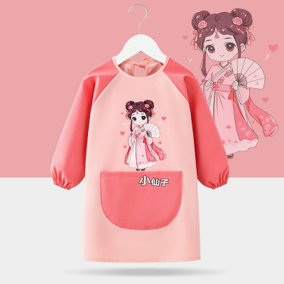 儿童绘画围裙画画罩衣防水防脏女宝宝美术反穿护衣幼儿园吃饭围兜