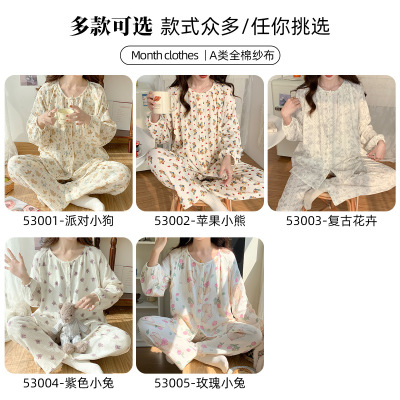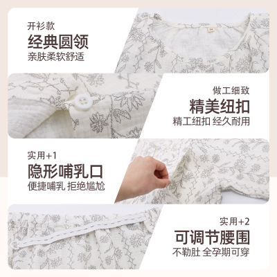 喜月A类棉纱月子服夏季纯棉 孕期产后哺乳喂奶吸汗孕妇睡衣女