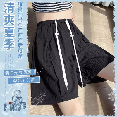 大码孕妇短裤夏季薄款外穿抽绳款打底裤小个子休闲五分裤孕妇夏装