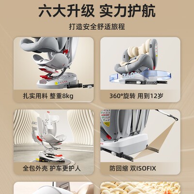 【品牌源头】两只兔子求知2PRO儿童汽车安全座椅0-7岁360旋转