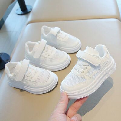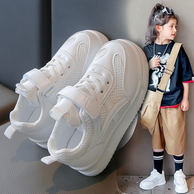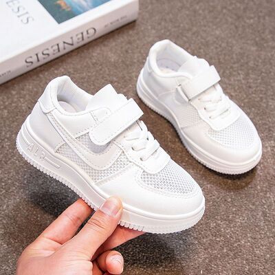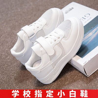 儿童小白鞋透气网面休闲男童女童款校园幼儿园小学生纯白色运动鞋