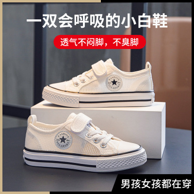 儿童透气网面魔术贴帆布鞋2025夏季男女小中大童学生板鞋宝宝鞋潮