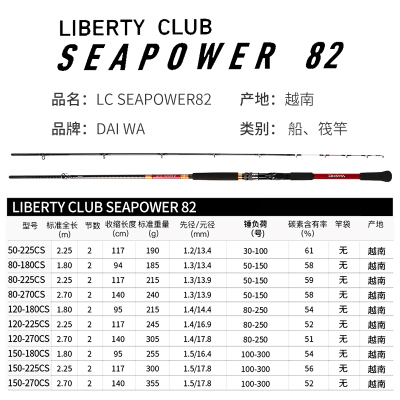 DAIWA达亿瓦新款LC SEAPOWER 82调达瓦船钓竿海钓竿铁板筏钓鱼杆