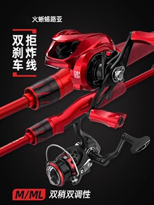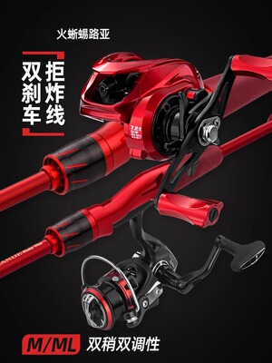 瑞士火蜥蜴路亚竿套装水滴轮全套远投黑翘嘴钓鱼竿碳素单竿海钓竿