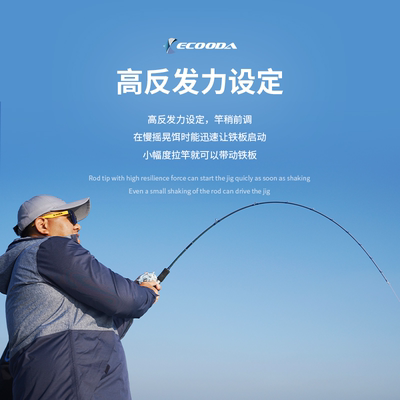 ECOODA/青蓝慢摇铁板竿近海船钓杆富士全实心碳素海钓竿特价清仓