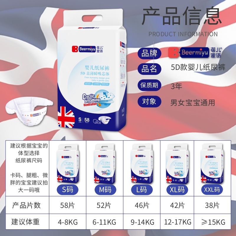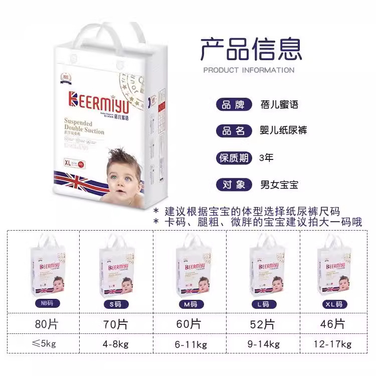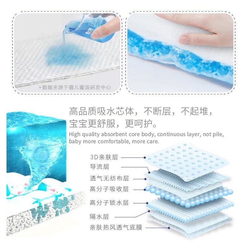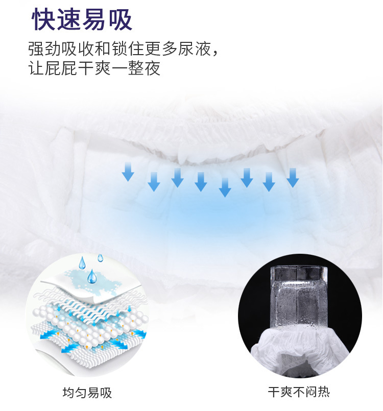 纸尿裤特质:透气,轻薄,棉柔,干爽,超强吸水