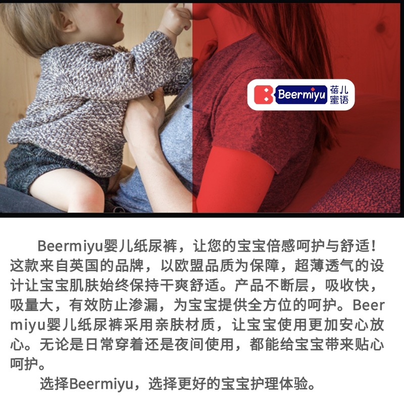 商品名称:蓓儿蜜语beermiyu婴儿尿不湿棉柔透气纸尿裤超薄男女宝宝拉拉裤