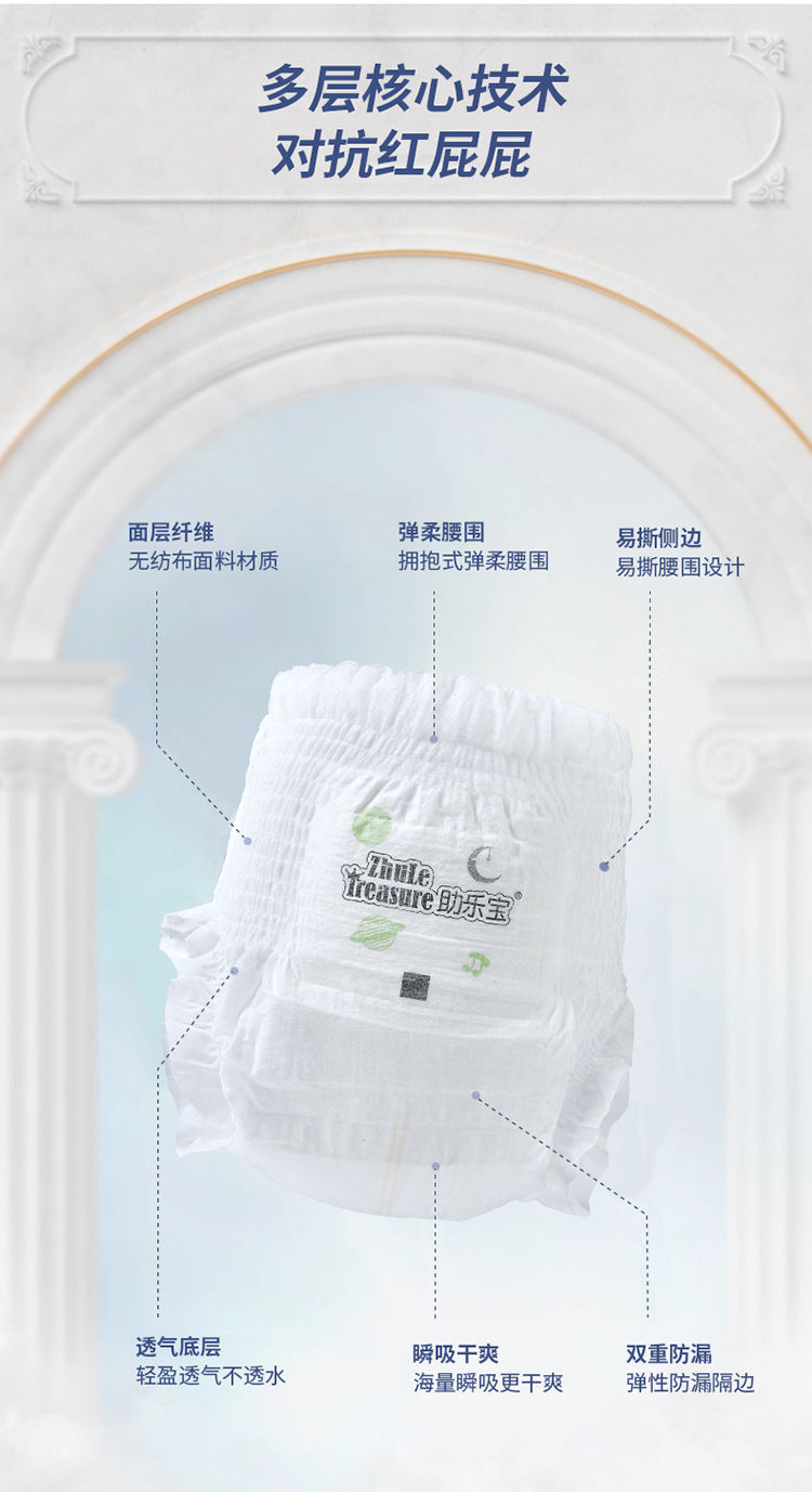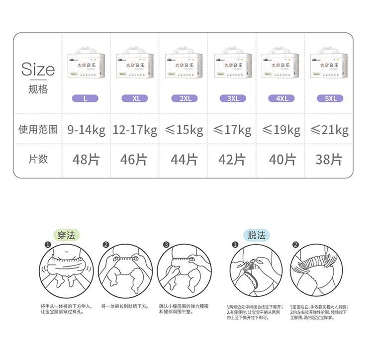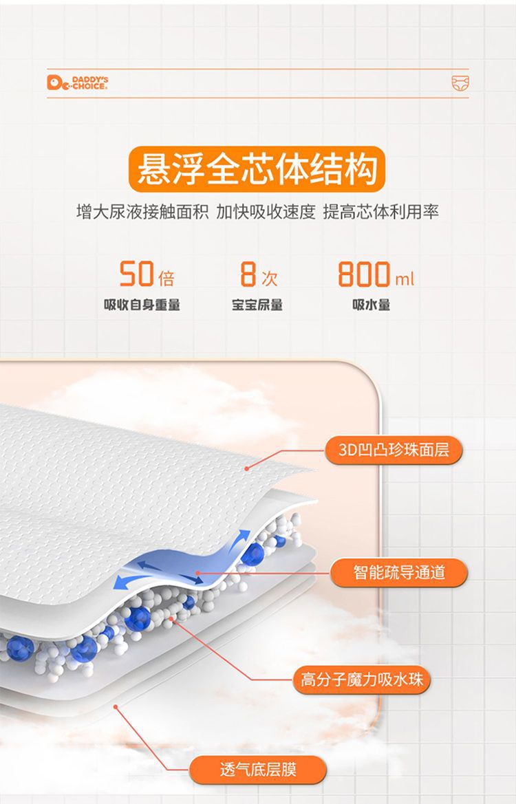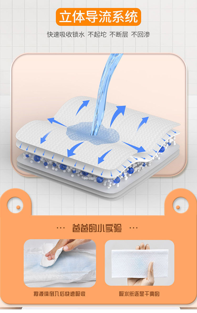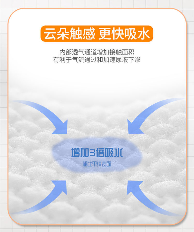 纸尿裤特质:透气,轻薄,棉柔,干爽