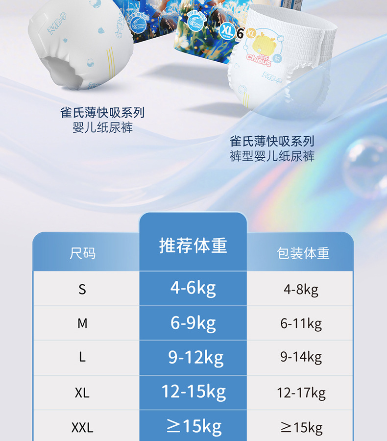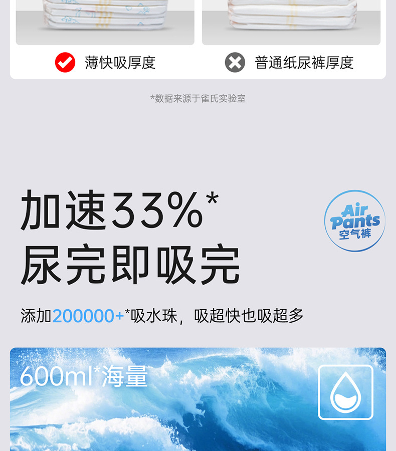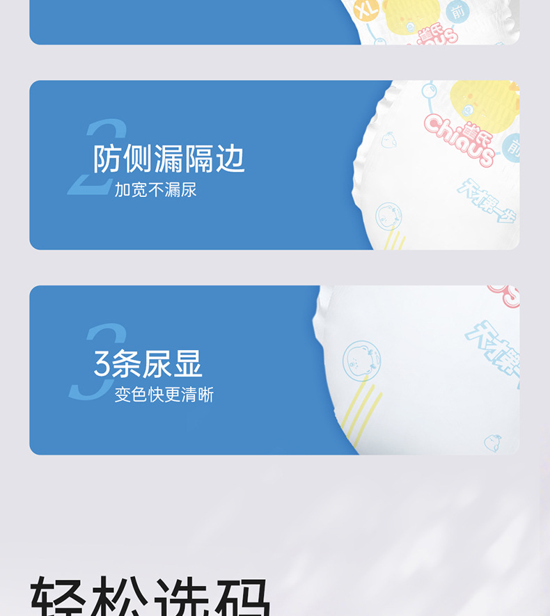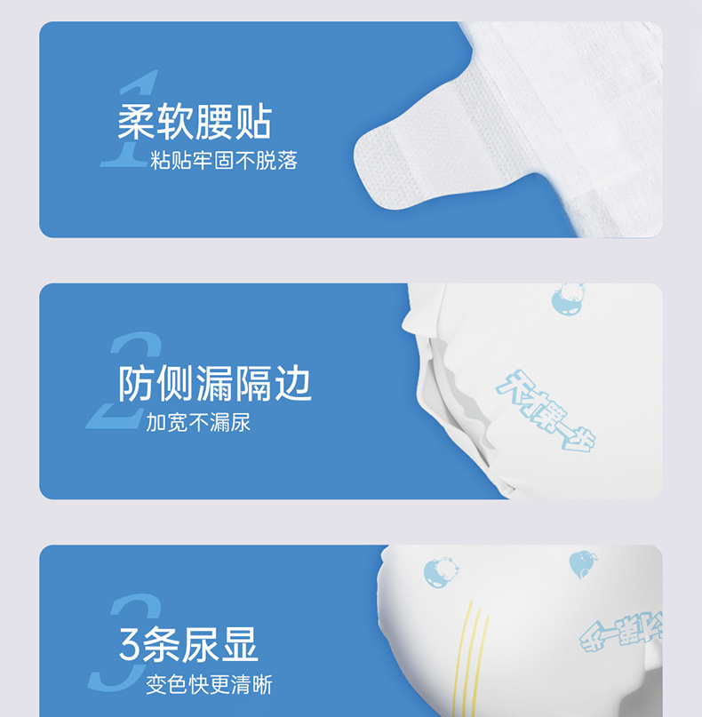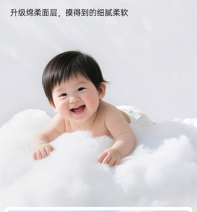 纸尿裤特质:透气,轻薄,棉柔,干爽,超强吸水