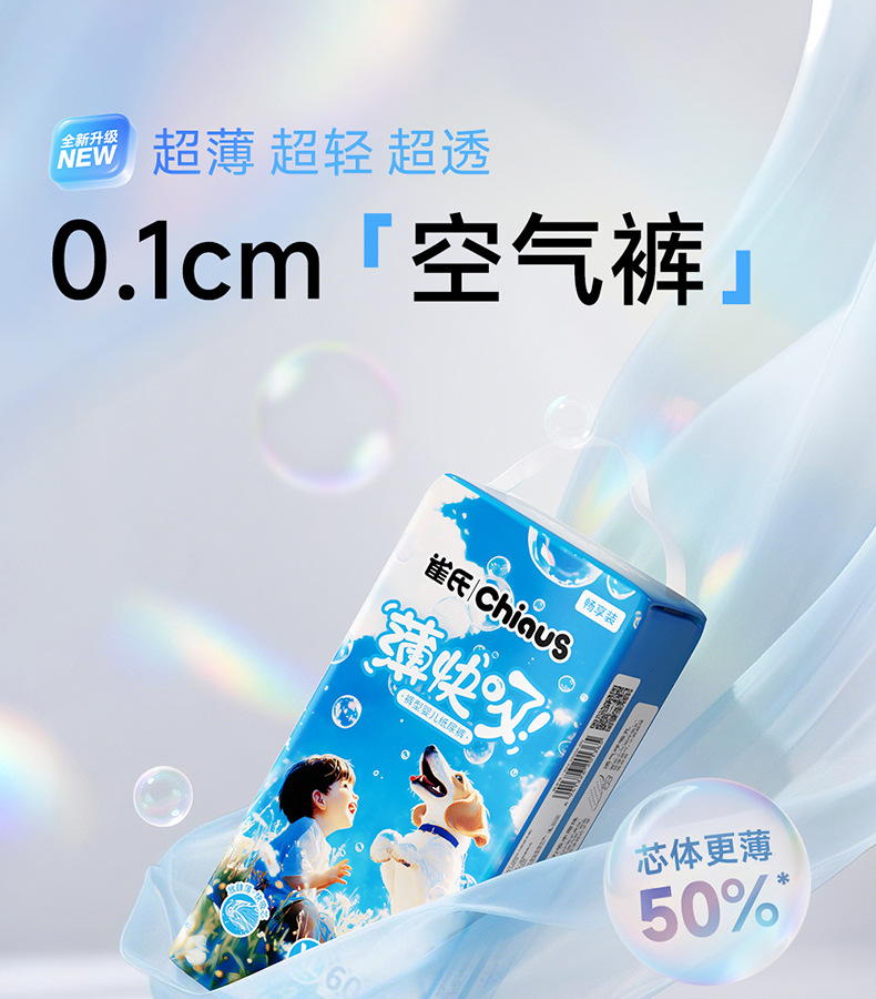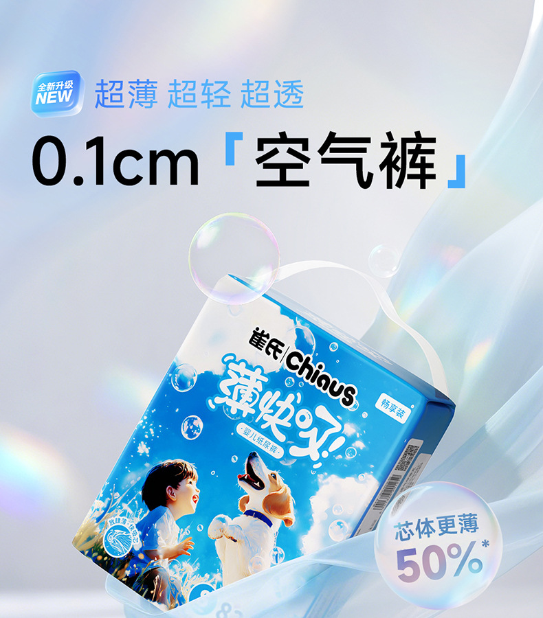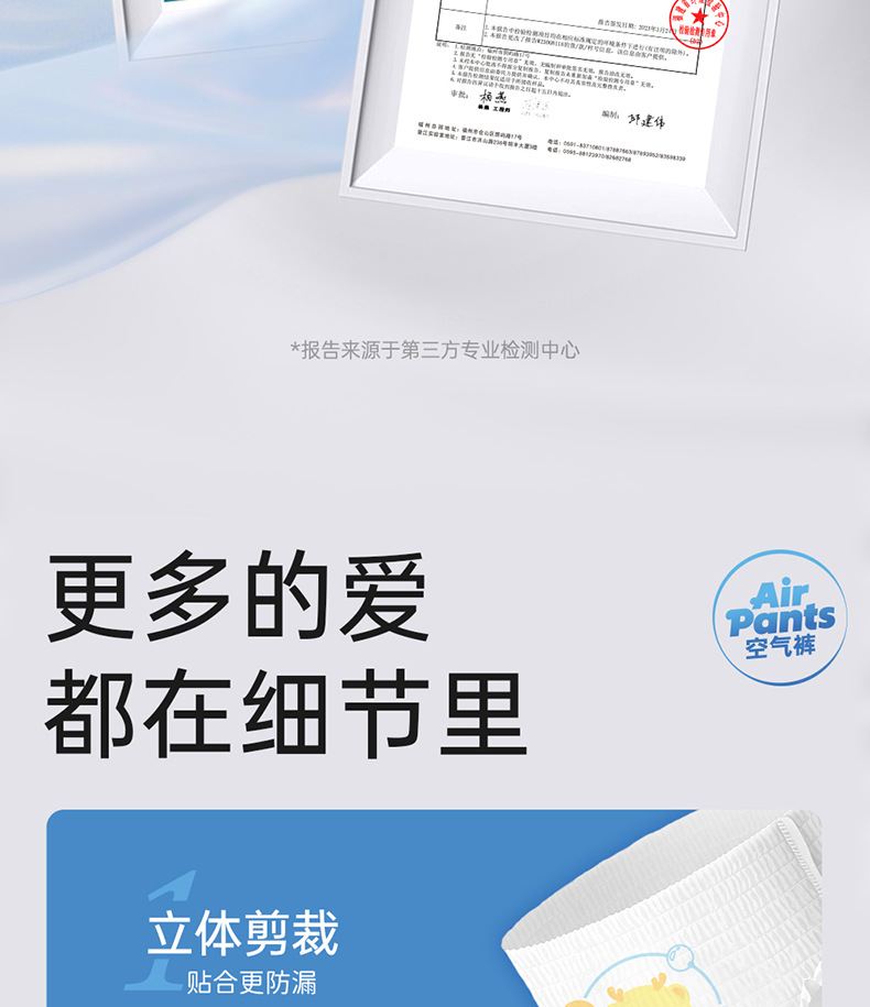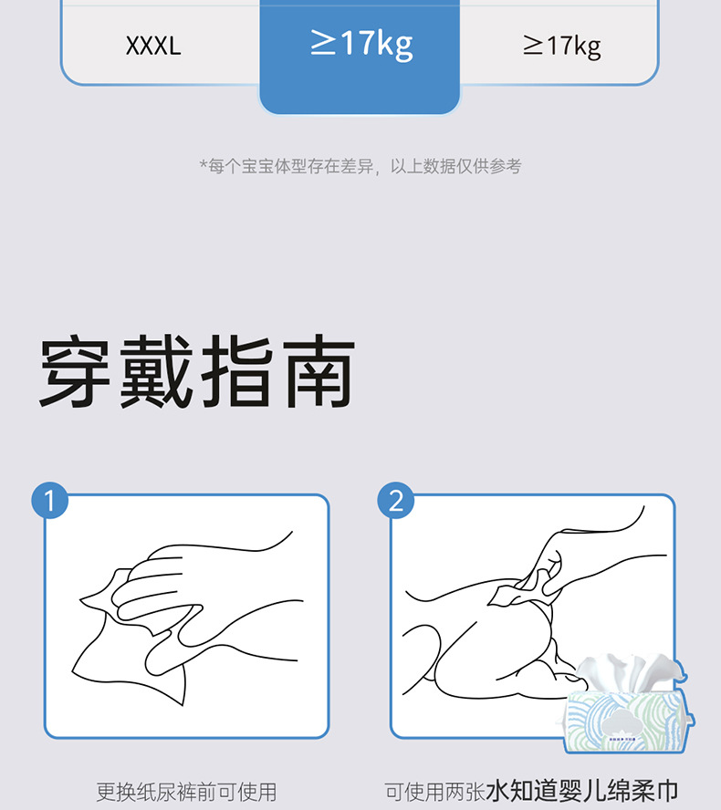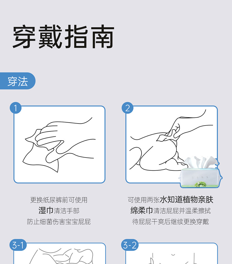 纸尿裤特质:透气,轻薄,棉柔,干爽,超强吸水