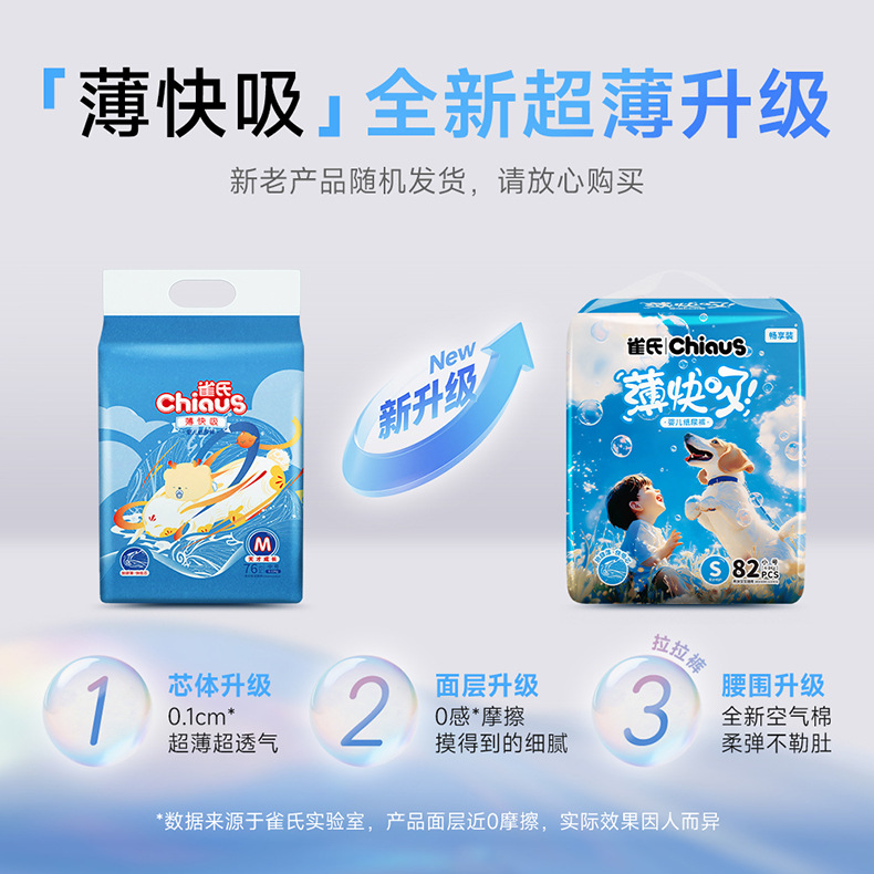雀氏薄快吸婴儿纸尿裤超薄干爽尿不湿拉拉裤大包更优惠夏季不闷热