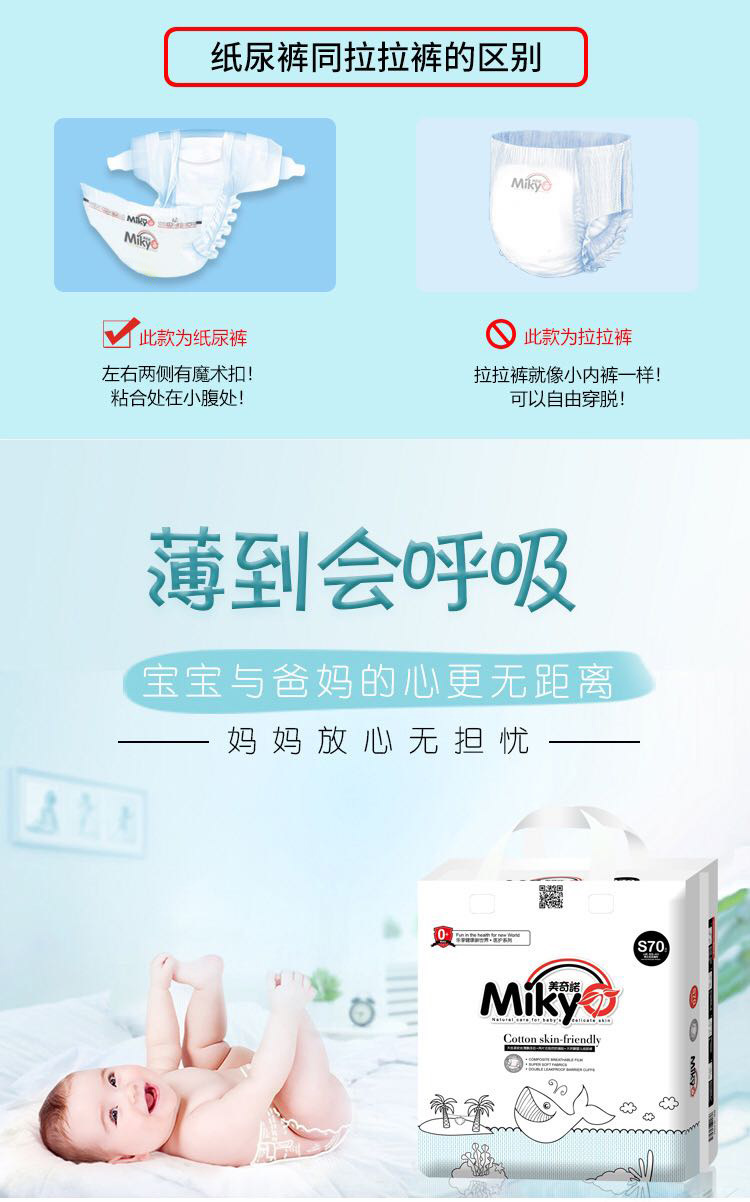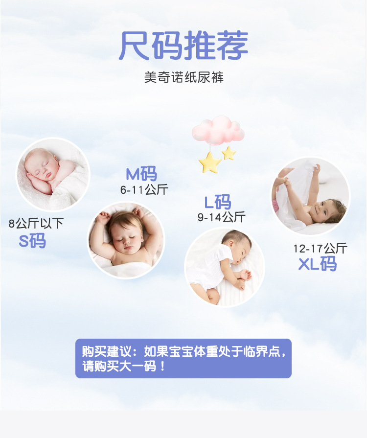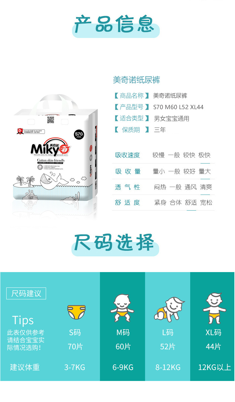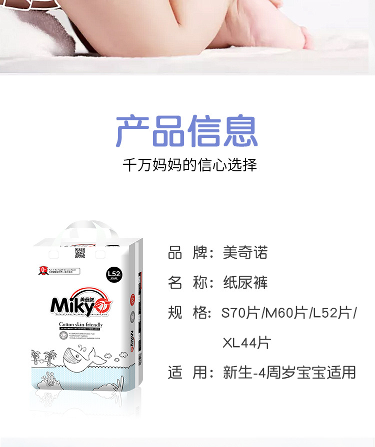 商品名称:美奇诺婴儿纸尿裤宝宝拉拉裤超薄干爽透气儿童尿不湿