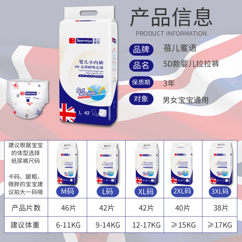 蓓儿蜜语薄款拉拉裤纸尿裤婴儿透气男女宝宝成长裤尿不湿货源