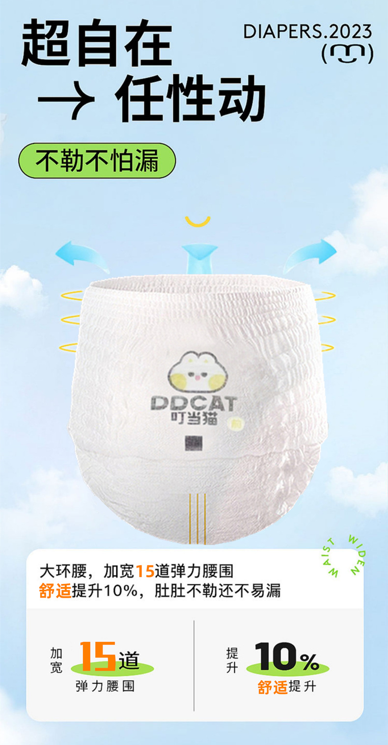 商品名称:叮当猫医护级婴儿纸尿裤超薄透气尿不湿不红PP全包臀拉拉裤一包