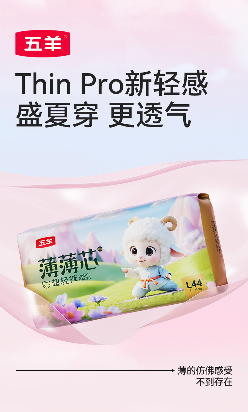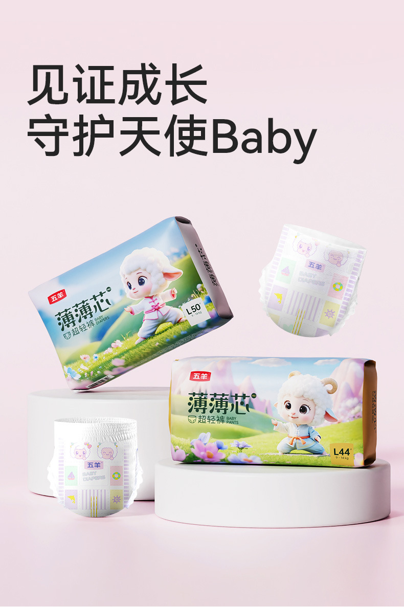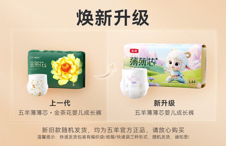 五羊婴儿薄薄芯金茶花纸尿裤成长裤超薄干爽透气舒适宝宝尿裤