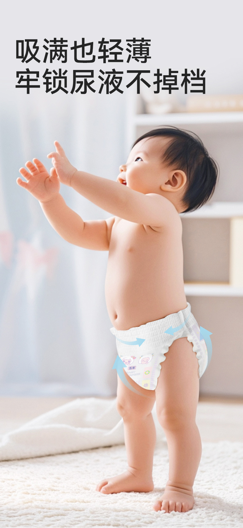 商品名称:五羊婴儿薄薄芯金茶花纸尿裤成长裤超薄干爽透气舒适宝宝尿裤