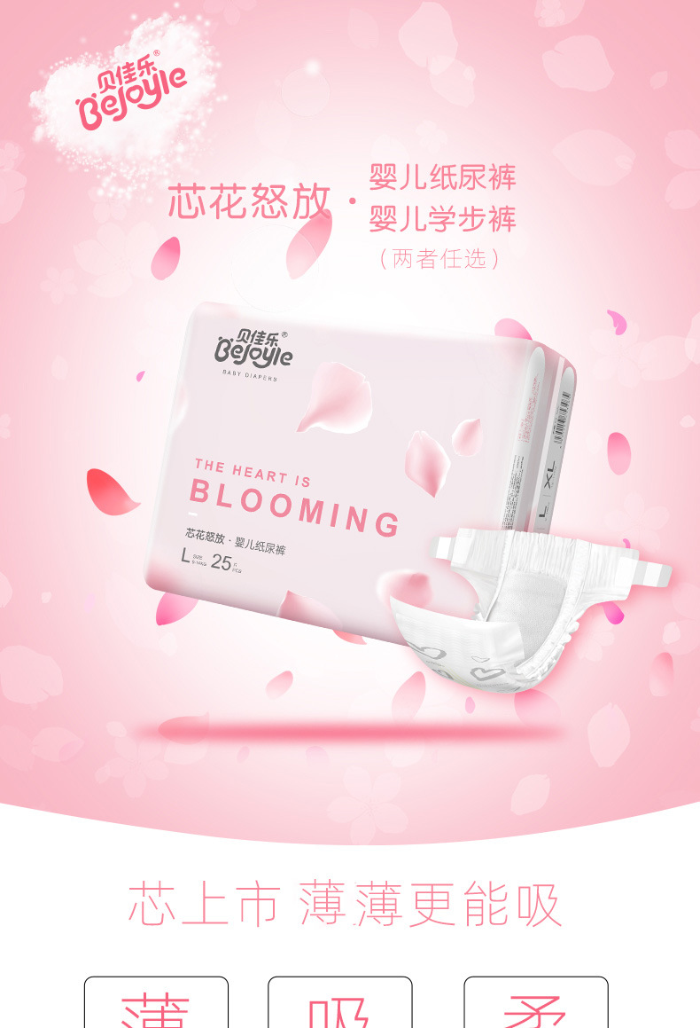 贝佳乐芯花怒放婴儿尿不湿轻薄透气干爽纸尿裤宝宝拉拉裤正品