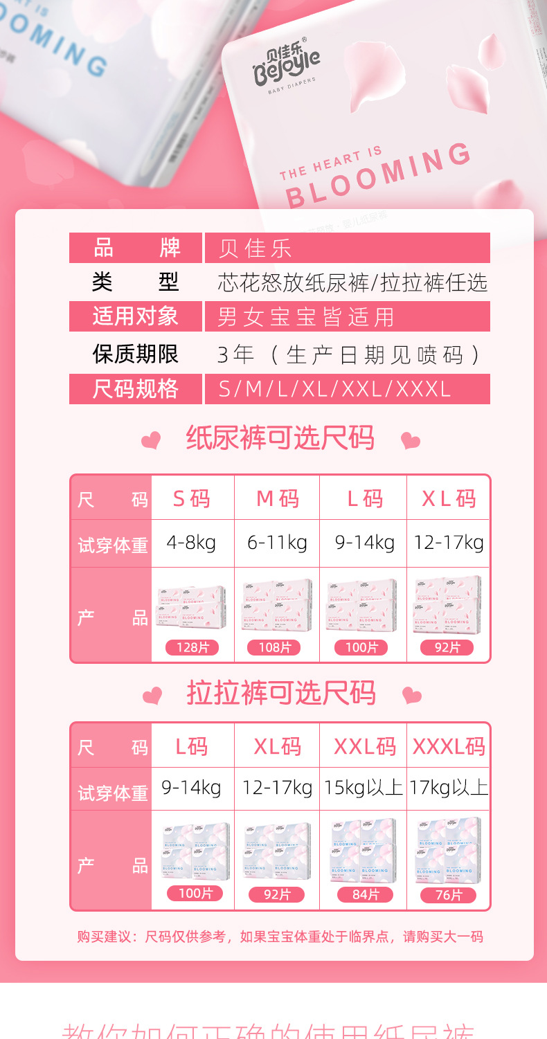商品名称:贝佳乐芯花怒放婴儿尿不湿轻薄透气干爽纸尿裤宝宝拉拉裤正品