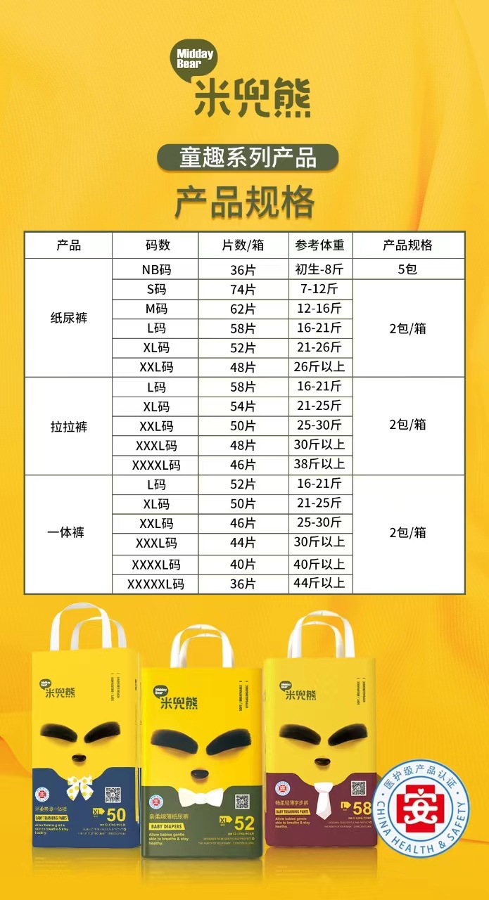 米兜熊童趣纸尿裤医护级婴儿拉拉裤宝宝尿不湿学步裤超薄