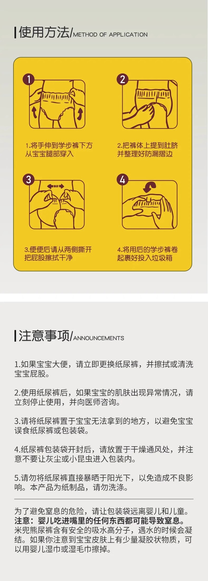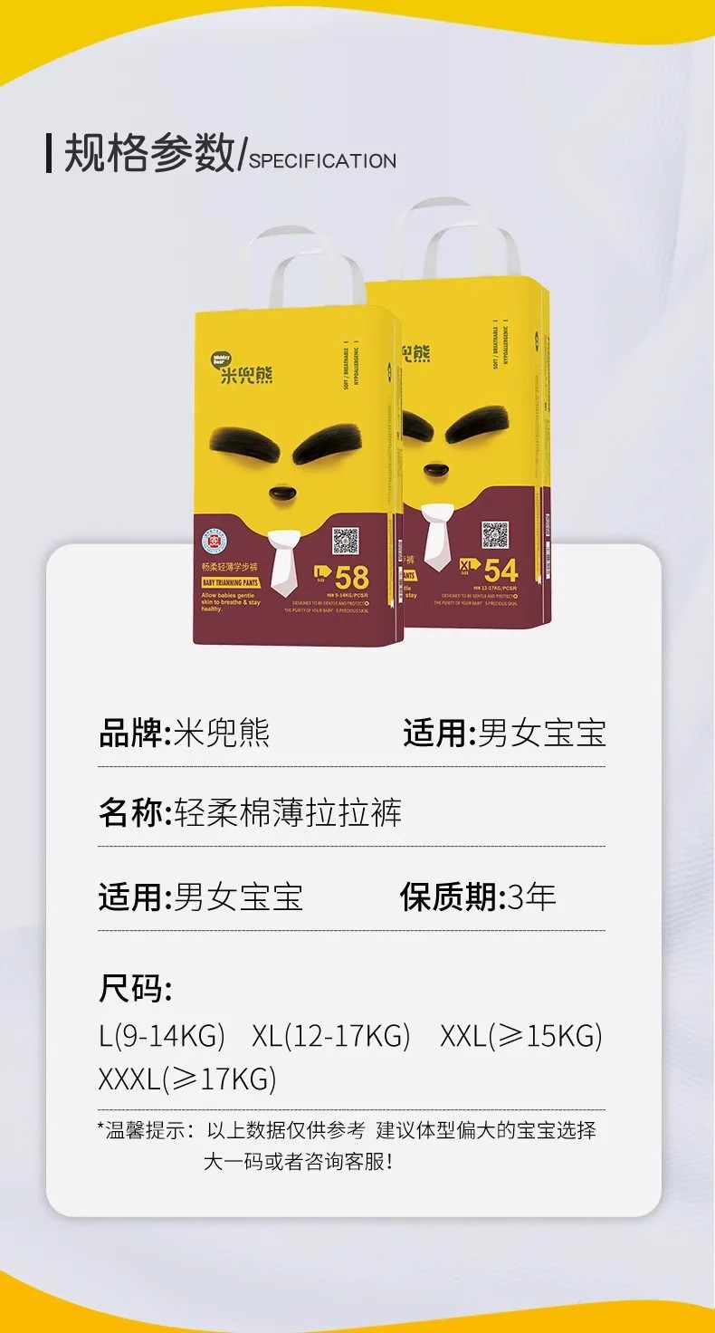 商品名称:米兜熊童趣纸尿裤医护级婴儿拉拉裤宝宝尿不湿学步裤超薄